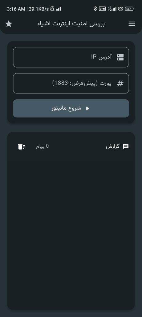 همچنین در این دوره ابزار تست نفوذ اینترنت اشیا هم ساختیم و در کافه بازار منتشر کردیم، یه پروژه عملی که تمام نکات مربوط به انتشار اپلیکیشن ها هم گفته شده. تصویر زیر یکی از پروژه هایی هست که در این دوره انجام دادیم:
