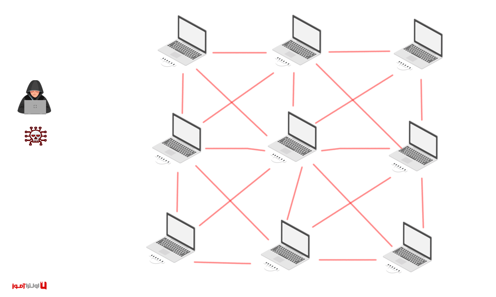 وقتی حرف از تکثیر بدافزار میزنیم، یعنی اینکه بعد از آلوده کردن یک سیستم، بدافزار میتونه خودش رو روی بقیه دستگاهها هم تکثیر کنه. بذار یکم شفافتر بگم چیطوری: